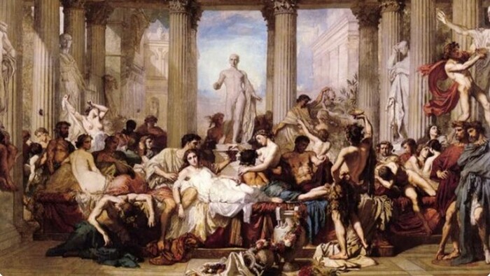 Так вот, допустим, весь ты такой "статусный римский пацан". Что бы "от других не отличаться" — запилил у себя на вилле ремонт по всем правилам. И пригласил друзей и гетер на оргию по случаю новоселья\ремонта.
