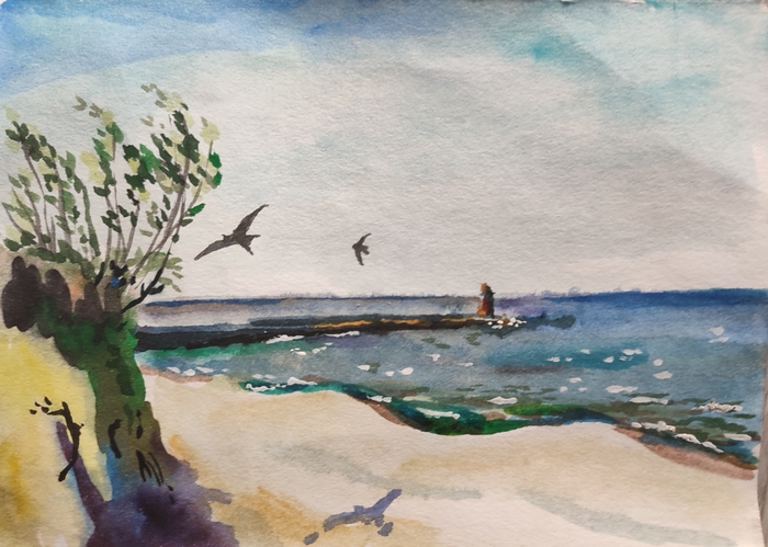 [моё] Балтийск Акварель Этюд Ветер Длиннопост
