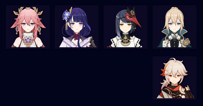 В качестве эпилога будет список персонажей, который нужен под Яе в бездну. Если не знаете, кого качать - смотрите сюда.