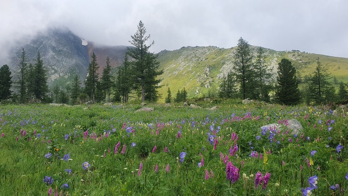 Несмотря на последний месяц лета, погода была нестабильной. (Опять этот Алтай!) Поэтому штурмовать пик Ворошилова, который был где-то в облаках, на второй день я не решился, и мы довольствовались прогулками вокруг озера.