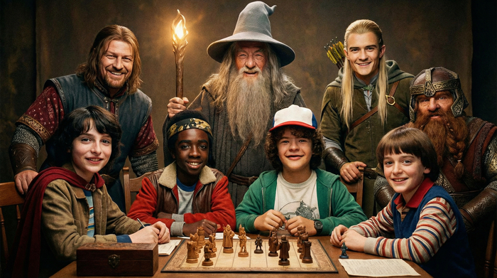 «ДМ Колец» — ретеллинг «Властелина Колец» как описания кампании в D&D 3.5, созданный Шеймусом Янгом в 2006–2007 годах. Ремастер комикса делается детьми автора в память об отце.