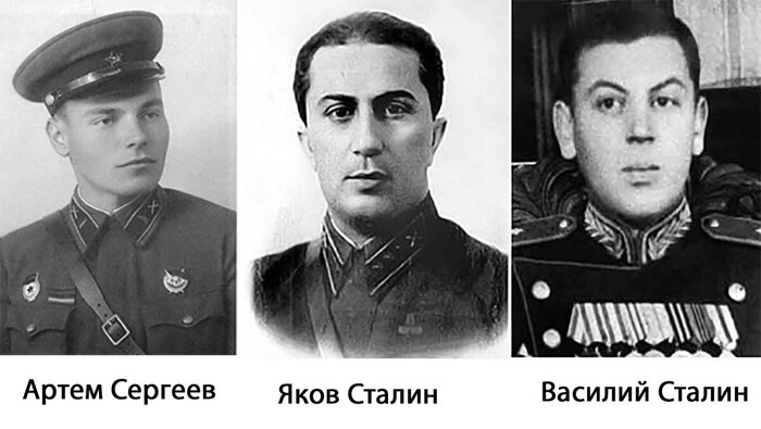 1. Яков и Василий Сталины. Первый – был танкистом. Второй – лётчиком. С Яковом история тёмная. Считается, что он попал в плен и был ликвидирован при попытке побега. Но есть и другие версии. Мы не будем сейчас детально разбираться в биографии Якова Сталина. Факт есть: он воевал. Василий был отличным летчиком, за что получил ряд высоких государственных наград.