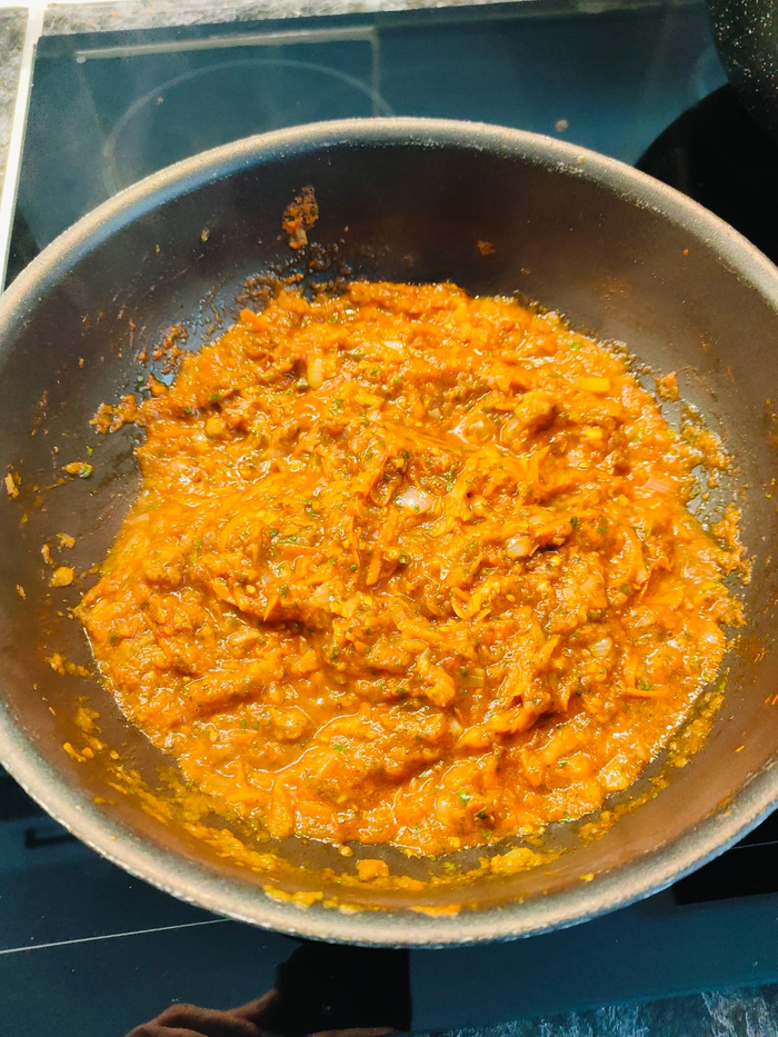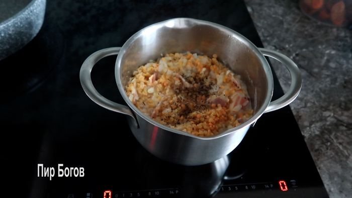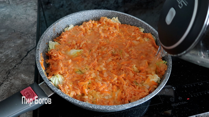P.S. Извините, в этот момент телефон сел и дальнейший процесс запечатлеть не удалось. Но в итоге получилось такое блюдо (минус примерно литр жидкости).