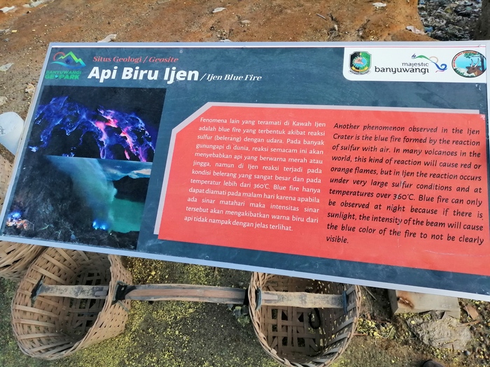 Под озером находится магма, которая не выходит на поверхность, поскольку заперта большим и плотным слоем жидкости. Вулкан Иджен находится в стадии засыпания, поэтому его активность снижается. Последнее извержение было зафиксировано в 1936 году. Однако для вулкана все еще характерна газовая (фреатическая) активность. Периодически из трещин (фумарол), расположенных на его склонах, вырываются раскаленные сернистые газы, смешанные с водяными парами и именуемые сольфатарами (лат. «серная земля»). Эти газы, выходя на поверхность, обогащаются кислородом и самовоспламеняются. Сгорая при температуре 600 °С, сольфатары образуют пятиметровые синие языки пламени. Когда часть сернистого газа смешивается с водяным паром и конденсируется, возникают горящие потоки синего цвета, стекающие по склонам вулкана и внешне напоминающие лаву. Это природное явление называется «Голубая лава», хотя к настоящей вулканической лаве не имеет никакого отношения. Наблюдать синие огненные потоки лучше всего в темное время суток.