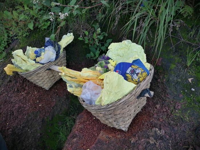 Работать носильщиком серы - это жесть. Реально жесть. Я на спуске пораспрашивал Мамада о них. Делают они по три ходки в день - это около 15 км, и не по прямой, а горной местности, спуск в кратер так вообще... Сдают серу за 1200 рупий за кг (~6 р.), в среднем несут по 70 кг за раз, получается в день зарабатывают около 1300 р. Можешь им рассказать как тяжело тебе работать в офисе.