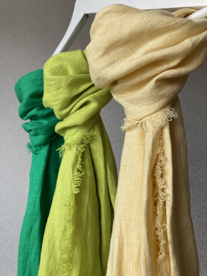 Шарф Синий Индиго Салатовый Желтый Зеленый Мода Стиль Стильно Выгляди стильно На шею Образ Качество Хорошее качество Лен Длиннопост