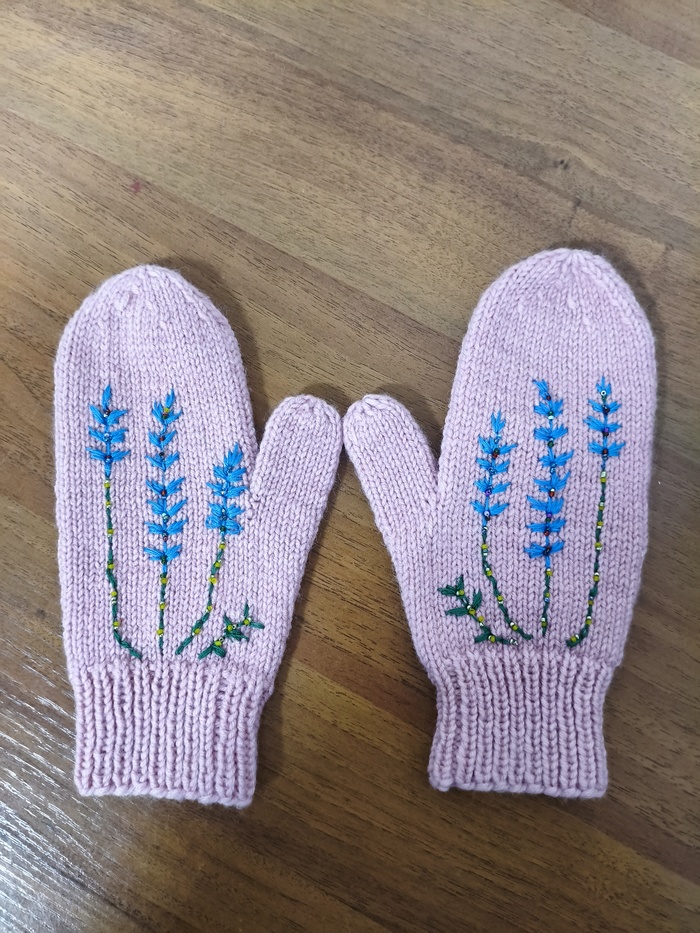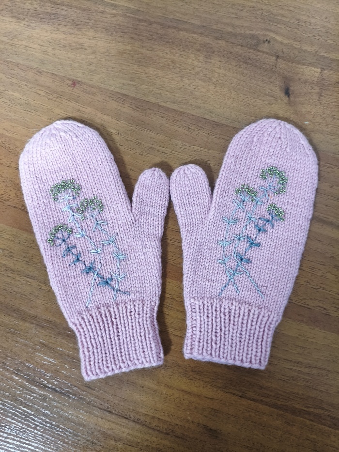 В этот раз я внезапно подсела на варежки спицами😃 А коллеге пришлось их украшать. Может быть хоть варежками заманим зиму в наши края, надоели дожди и слякоть.