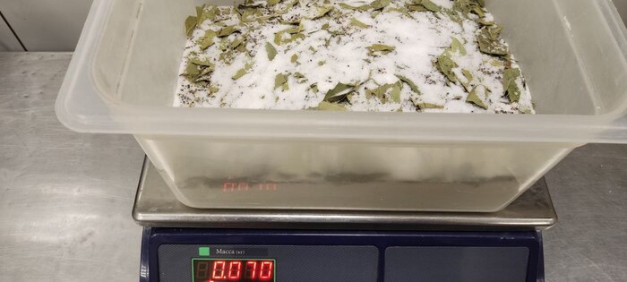 Как следует всё перемешали, чтобы лаврушка измельчилась.