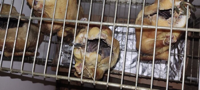 Опалили их горелкой, чтобы убрать мелкие волоски, которые пропустили на этапе ощипывания.