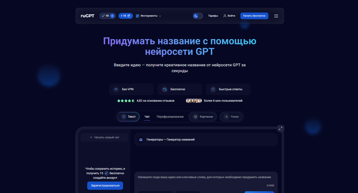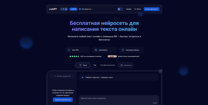 Для кого лучше всего: Идеальный выбор для всех, кто хочет надёжный бесплатный инструмент без VPN. Особенно хорош для задач, где важно глубокое понимание русского языка — написание статей, рефератов, деловой переписки.