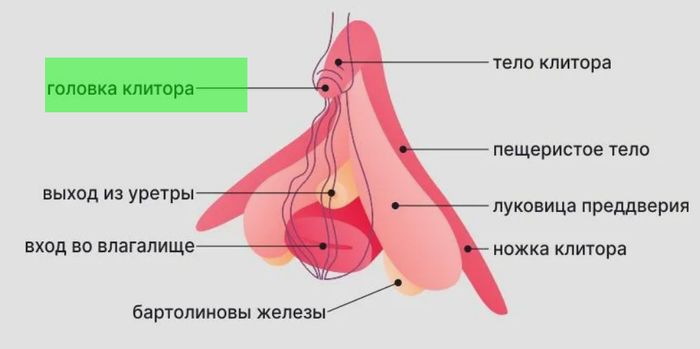 Как видим, большая его часть скрыта в теле, и наружу торчит только головка. И оргазмами заправляет не он, а мозг. Оргазм это вообще рефлекторный акт центральной нервной системы, а клитор всего лишь "кнопка". Поэтому для хорошего секса и оргазма нужно хорошее возбуждение, а всё остальное лишь инструменты.
