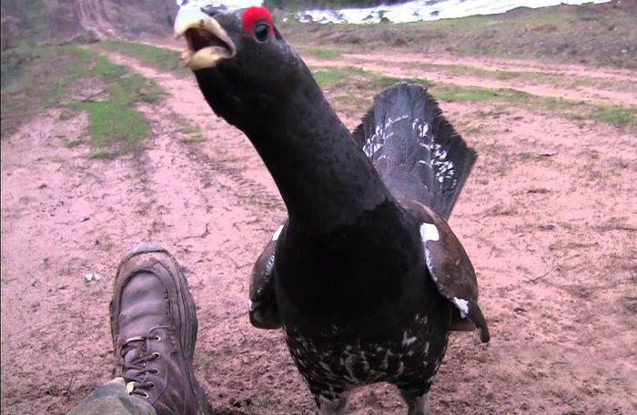 И снимать глухаря на камеру тоже небезопасно, потому что для борьбы с ним нужны две свободные руки.
