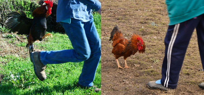 Вот что можно сделать: если столкнулись нос к клюву, медленно отходите назад, не выпуская агрессивную ко-ко-ко из виду. А потом разворачивайтесь и просто бегите, если кондиция позволяет.