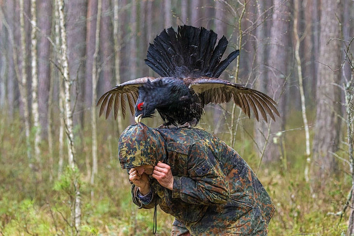 Нагоняй получают не только пернатые конкуренты. Во время тока глухари вместе со слухом, по ощущениям, теряют и разум. Древний, как мир, инстинкт размножения становится доминантой. Самцы принимают за соперников всё, что движется, в том числе и человека.