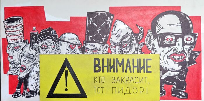 Рис. 1. Как будто само по себе граффити. То самое, которое надо закрасить. Персонажи абсолютно ни с какими реальными личностями не имеют пересечений. Это грубо говоря состав участников, где 70% это админ. ресурс, отвечающий за бюрократию