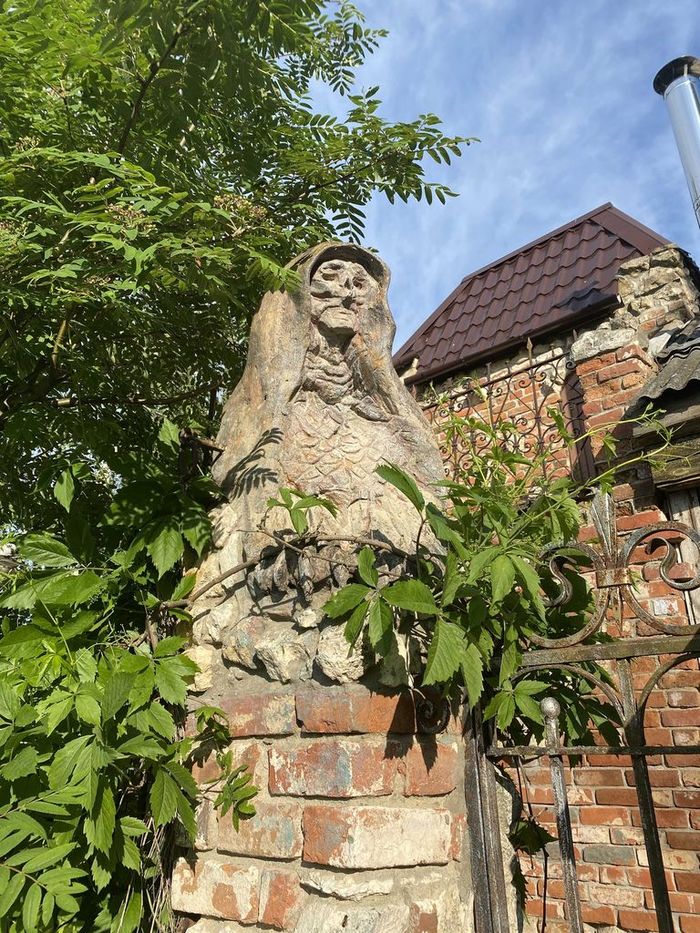 А еще вы загляните в селение Старая Рязань неподалеку - там на высоком берегу Оки есть любопытный домик местного художника Вадима Овсянникова. Стилизованный под замок, украшенный драконами, черепами и прочей рокерской атрибутикой, он тем не менее органично вписывается в местность. И хозяин ему под стать - мы его встретили. И он любезно предложил нам расположиться биваком прямо неподалеку от его дома))