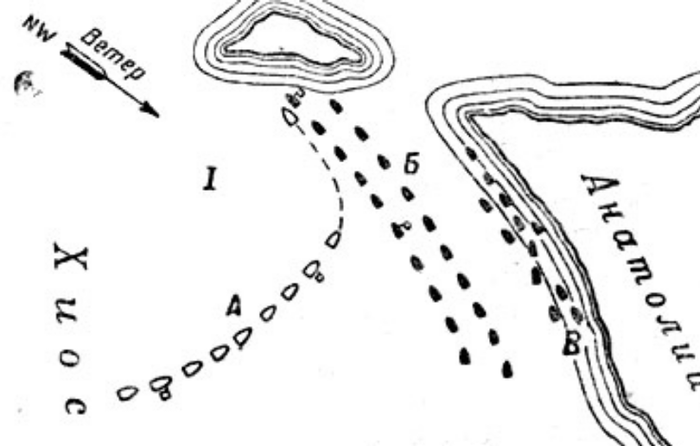 Именно в этом узком проливе между материковой Османской империей и островом Хиос находилась турецкая эскадра