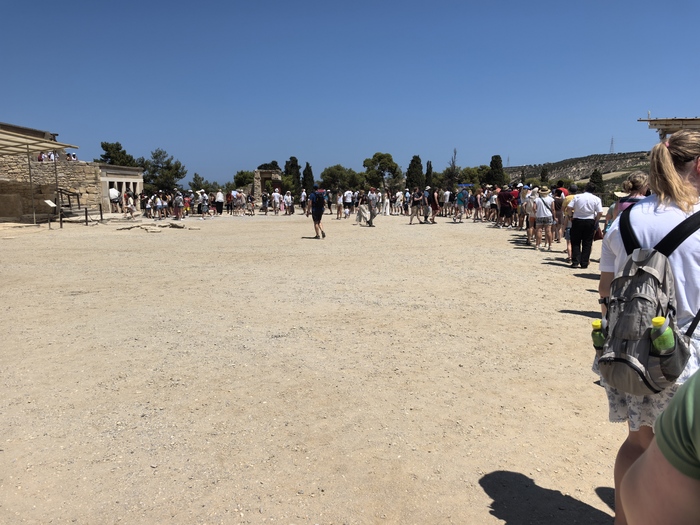 На улице уже жарковато, солнце припекает. Цель этого дня доехать до Дворца Кноссос, доехав в центр города и была надежда уехать на автобусе, но без шансов он едет забитый и даже не останавливается. поэтому пошёл пешком из центра Ираклиона около часа, потом вторую половину дороги доехал на автобусе