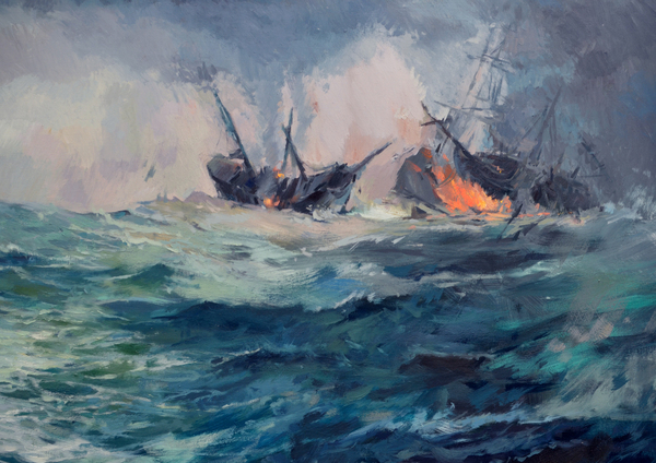 "Морской бой" масло, холст . 2017 . Здесь не только работы великого художника Айвазовского, но и много работ других художников , в том числе и мои ))))) Рахимовой Гульсины.