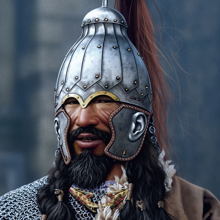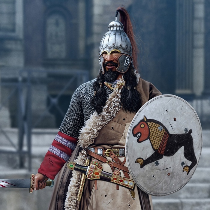 Детализированный арт художника Joan Francesc Oliveras Pallerols, где можно видеть знатного гуннского воина из орды Аттилы, V век нашей эры.