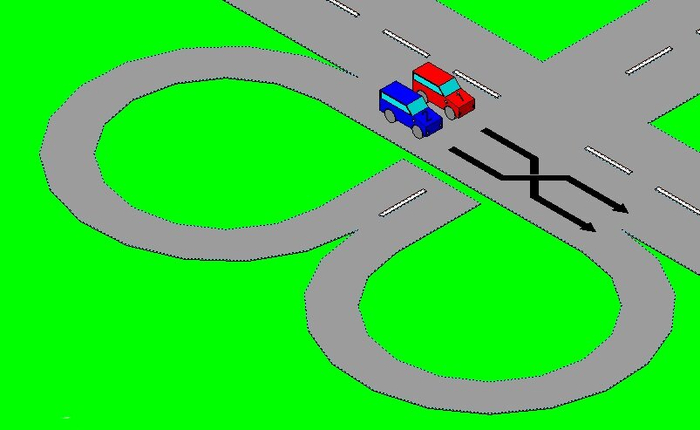 Если вы выезжаете с развязки включив левый поворот то пропускаете всех кто едет прямо и смело выезжаете перед тем, кто включив правый поворот сбавляет скорость для перестроения