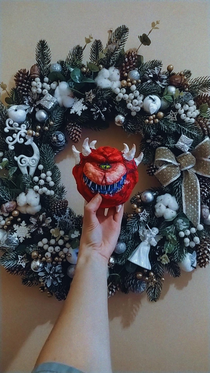Эта идея появилась у меня еще накануне прошлого НГ, но в силу обстоятельств не было ни ёлки, ни ёлочных игрушек, кроме одной - какодемона (самое последнее фото). Я делала его около двух недель и планировала повесить на ёлку как украшение. В феврале случились трагичные обстоятельства, из-за чего была вынуждена в спешке покинуть дом и своего какодемона (он просто не влез в чемодан). Это событие настолько меня гнетет, что в надежде унять боль я сейчас делаю второго какодемона. Так уж сложилось, что как творец я безумно привязана ко всему, что создаю, и какая-либо утрата детища фатальна для меня.
