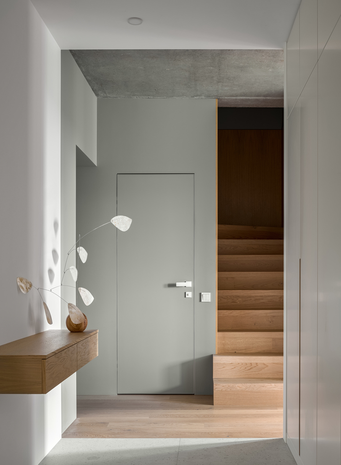 У меня, кстати, тоже в квартире нет плинтусов. Я вначале думал, что идея без плинтусов как-то не очень. Но потом посмотрел как это выглядит уже в готовом варианте и согласился. В итоге не пожалел. Уже около 4 лет ремонту. И все отлично. У вас стены под штукатурку, а у нас под краску на ровную стену. Хотя и есть несколько фактурных стен. Паркет приклеен к полу на клей. Зазор между стеной и паркетом маленький, около 3 мм и залит по итогу резиновым герметиком для дерева. Так же и переходы между паркетом и керамогранитом сделаны с маленьким зазором и все в один уровень. Паркет идет цельным полотном, переходит на лестницу и уходит на второй этаж без каких либо переходов. Там специальные угловые элементы для лестницы использовались и выглядит единым целым.