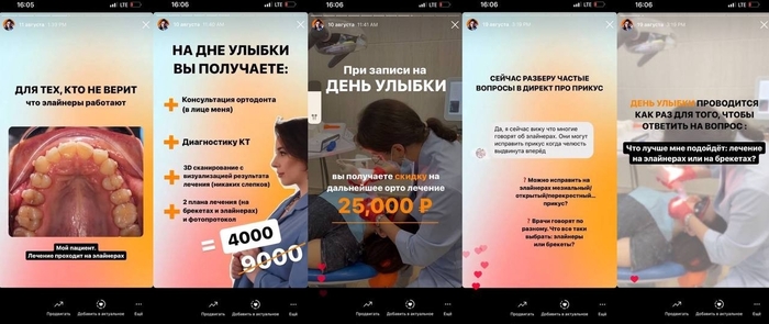 11 дней в августе 2022г в блоге Instagram* врача-ортодонта делали анонсы мероприятия "День улыбки" со следующим оффером: