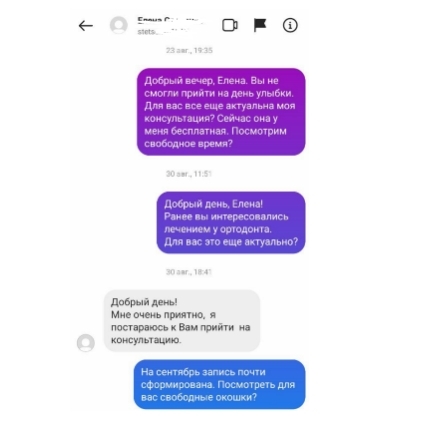6) Работа в директе с потенциальными пациентами, ведение базы заинтересованных