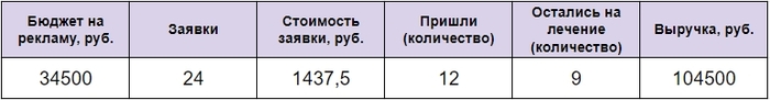 Общая сумма затрат на рекламу — 34 500 ₽