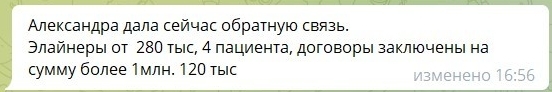 В итоге стоимость договоров заключена на сумму 1 120 000 руб. (элайнеры и ортодонтическое лечение)