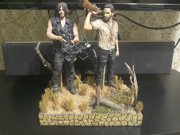 Сделал диораму для фигурок по телесериалу Ходячие мертвецы. Материал скульптурный гипс, мачете из стали Р6М5, высота фигурок 25 см. Представляю Вашему вниманию видео-обзор создания диорамы и фото отчет. Приглашаю на мой ютуб канал, на нем Вы найдете обзоры на фигурки и процессы изготовления подставок под фигурки и диорам https://www.youtube.com/channel/UCgpbMc1iMpzC0R3wISO-_UQ
