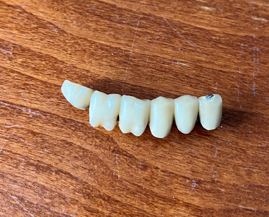 Первая с шатающимся мостом на 3, 5 и 8 зубе с 2 промежуточными частями-«седлами», сделанным 15 лет назад. На вопрос про запах, ответила, что сначала было неприятно, но потом привыкла, как и вся семья.