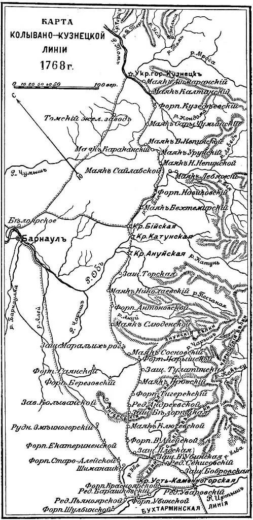 Карта Колывано-Кузнецкой линии из "Военной энциклопедии"