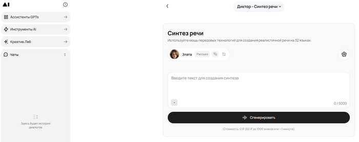 Вы генерируете речь за кредиты, и на тарифах сразу прописывают, на сколько минут озвучки их примерно хватит. Я бы использовал GPT-Tools, когда вам нужно быстро сделать озвучку для учебных/рабочих задач и параллельно допилить текст там же, в одном сервисе.