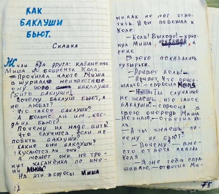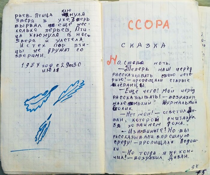Показывал здесь свою рукописную книжку, которую я сделал, когда мне было 10 лет. А тут отвечал на некоторые вопросы: 1) сам ли сочинял сказки? и 2) где первый том? Если коротко отвечать, то: 1) сам, 2) потерялся.