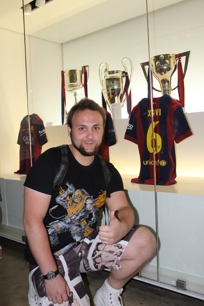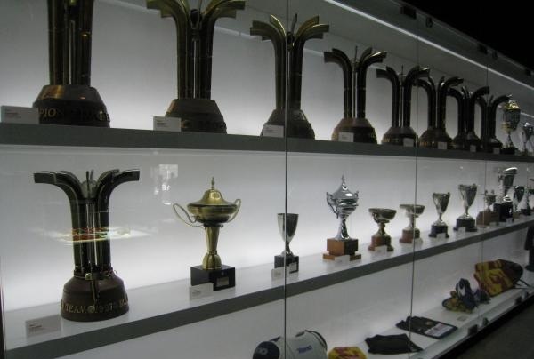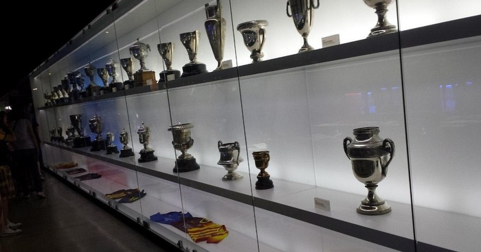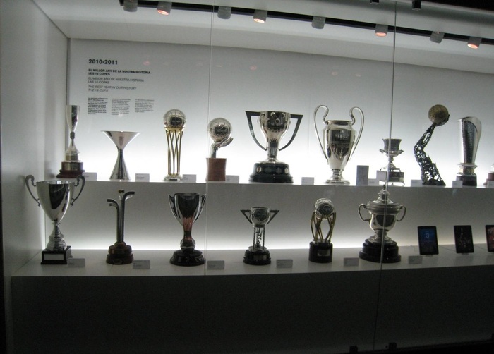 Экскурсия начинается с музея — и тут тебя сразу придавливает масштабом. Кубки за чемпионство Испании с 30-х годов, трофеи Лиги Чемпионов (в 2015м я, кстати, застал требл), бутсы начала XX века, футболка Диего Марадоны с автографом, зона с золотыми мячами и бутсами Лионеля Месси.