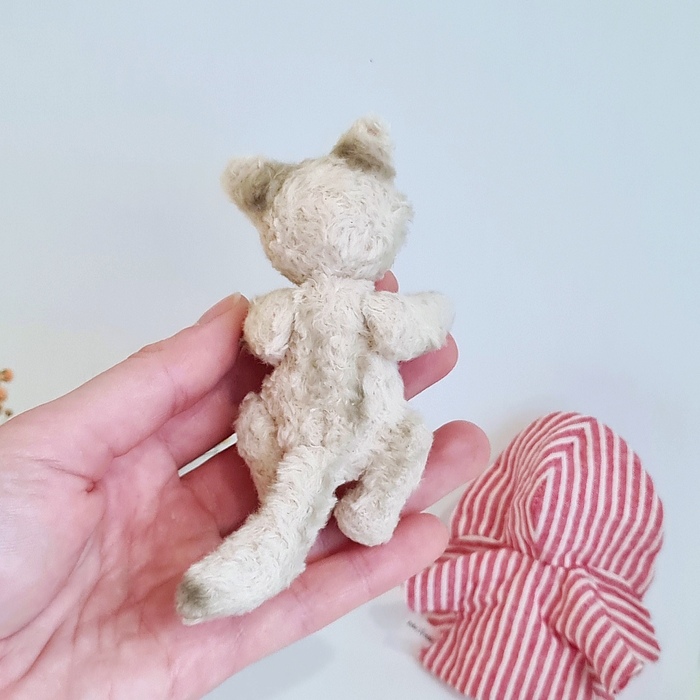 С тех пор он с особым воодушевлением ходил по полкам и ящичкам, заглядывал в коробки, проверял, крепко ли спят мишки, и приносил мастерице всякие находки: ленточку, пуговку, обрывок ткани «на удачу». Говорят, что если к вам попадёт этот котёнок, то вместе с ним приходит и маленькая порция смелости- на новые дела, новые мечты и тихие добрые чудеса.
