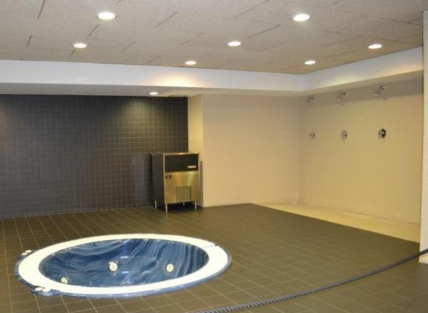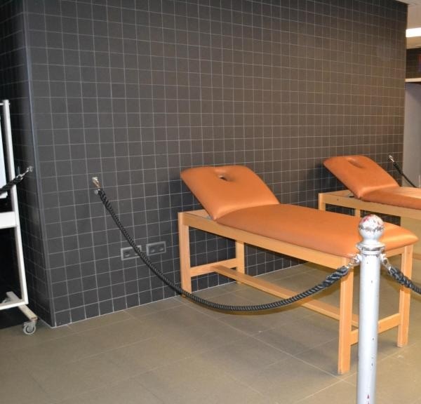 Дальше — микст-зона, конференц-зал и раздевалка гостевой команды. Здесь, как говорится, бедненько, но чистенько. Есть массажные столы, даже ванна с гидромассажем. А вот в раздевалку «Барсы» не пускают вообще. Говорят, там личные вещи игроков, ну и вообще это святая святых и нечего на это глазеть.