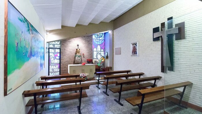 Из раздевалки по коридору проходишь на знаменитую лестницу, по которой игроки выходят на поле. И тут есть пара моментов, которые я запомнил сильнее всего. За одной из дверей на этой лестнице — небольшая часовня.