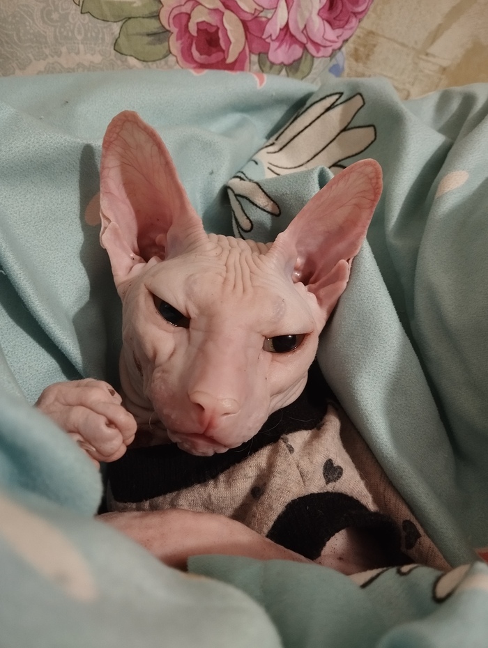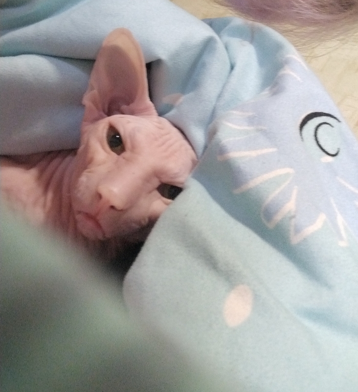 Этот канадский сфинкс — засранец. Зовут его Дениска.
