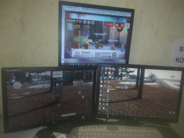 Итак. Сначала как обычно - однажды появилась возможность подключить второй монитор (или телевизор) к одной видеокарте. И понеслась! Долгое время я работал с двумя мониторами. Просто удобнее, чем один большой. Хотя бы тем, что какое видео фоном смотреть. Или лекцию слушать и сразу писать, а не альтабая тудой-сюдой.