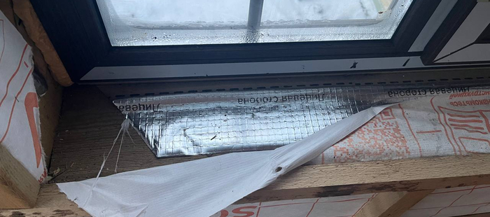 Помимо этого, замечательно установлены окна - пароизоляция втянута внутрь снаружи и монтажная пена задута между полиэтиленом и ПВХ оконных рам. Но это меньшее из зол.