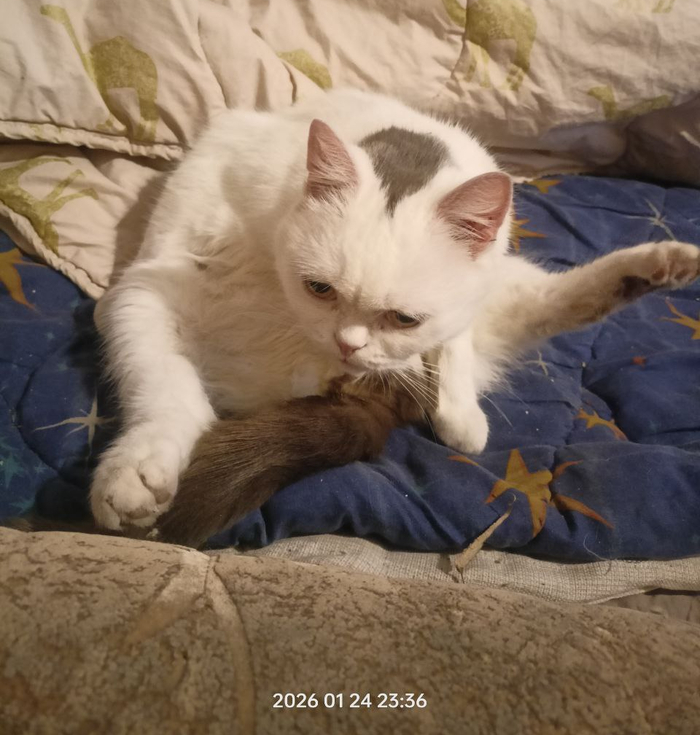 И если вы сегодня ещё не поиграли с ней - самое время это сделать. Пусть ваш день закончится мягким прыжком, весёлым мявом и счастливыми глазами вашего любимца.