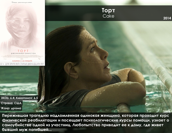 У Дженнифер Энистон после сериала «Друзья», где она сыграла Рейчел Грин, огромное количество поклонников по всему миру. Однако все они знали актрису в первую очередь по комедийному амплуа. И вот в 2014 году красавица Дженнифер наконец-то сыграла действительно сильную драматическую роль, чем и доказала свой профессионализм и универсализм. Фильм получился немного простеньким и чуть скучным, но при этом годным, а в некоторые моменты — по-настоящему сильным и цепляющим. Кстати, роль второго плана в этой киноленте принадлежит Сэму Уортингтону. А еще стоит отметить отличную игру Адрианы Барраса.