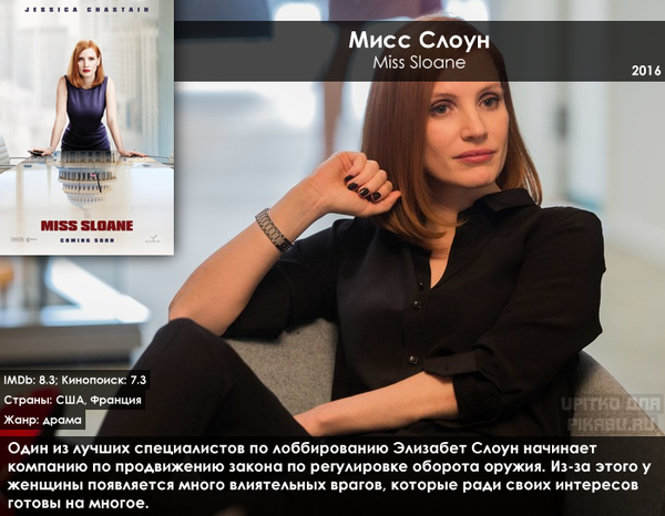 Один из моих любимых фильмов 2016 года с потрясающей Джессикой Честейн в главной роли, чьей игрой я по-настоящему восхищаюсь почти в каждой ее киноленте. Кино в основном состоит из диалогов и судебных процессов, но сняты они отлично!