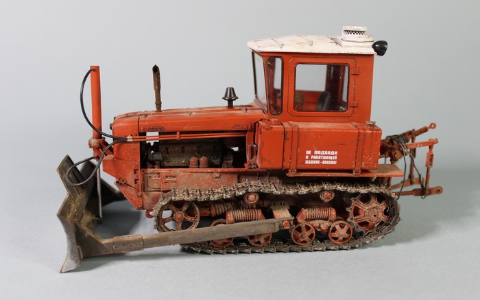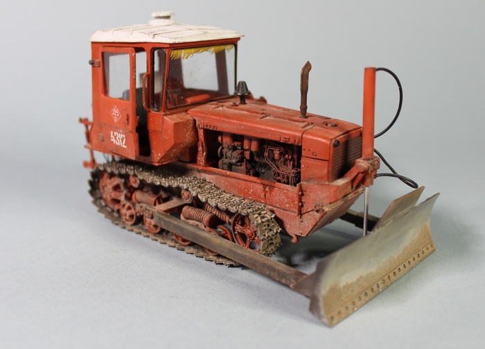 Всем привет! Закончил вчера модель ДТ-75м из полимерной смолы от отечественного производителя Red Iron models. Трактор решил сделать в варианте строительной техники, пропашной показался не таким интересным.