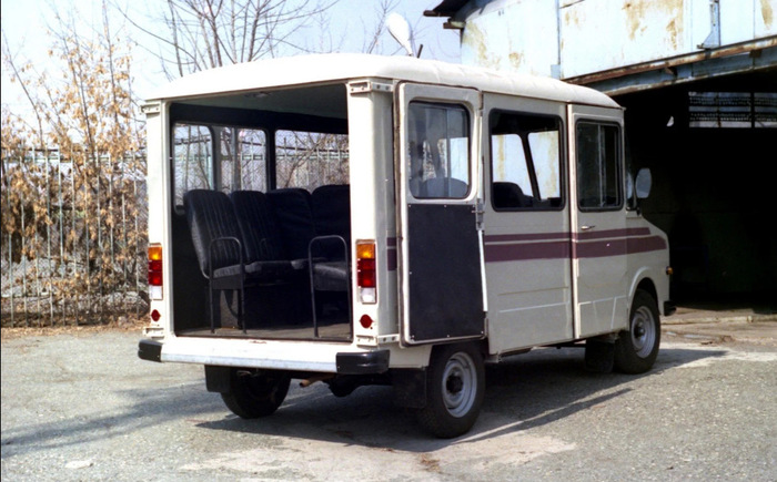 Назначение грузопассажирского варианта фургона (с двойной кабиной и укороченным грузовым отсеком) со временем менялось. В начале 70-х годов конструкторы видели в этой модификации учебную машину. В условиях рынка грузопассажирские фургоны оказались востребованы без какой-либо специальной начинки (EpA3-37308)