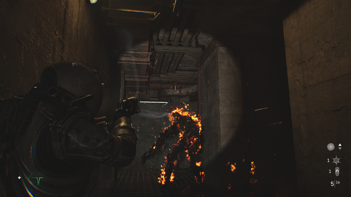 Патронов постоянно не хватает. Места в инвентаре – тоже, ведь каждое оружие и каждый боеприпас, каждый предмет и каждый тип огнесмеси (а их два – обычная капсула, поджигающая всё вокруг нас и магнитная мина), каждый ценный ресурс и каждая аптечка – всё это занимает драгоценные места и всё нужно, из-за чего игроку постоянно придётся думать, что же именно взять с собой, а что – оставить на базе.