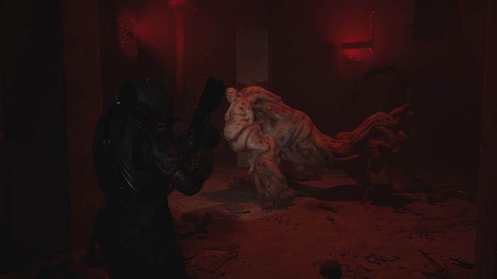 Геймплей в «Chronos: The New Dawn» достаточно стандартный для хорроров. Мы бродим по жутким локациям, отстреливаем монстров из немногочисленного оружия, поджигаем их с помощью огнесмеси либо взрывающихся красных баллонов, тактикульно расставленных на аренках, и продвигаемся по сюжету.